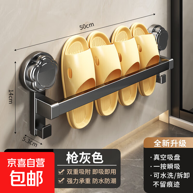 浴室吸盘拖鞋架免打孔卫生间置物架鞋子收纳神器厕所拖鞋沥水挂架 枪灰-吸盘拖鞋架【双人款50CM】