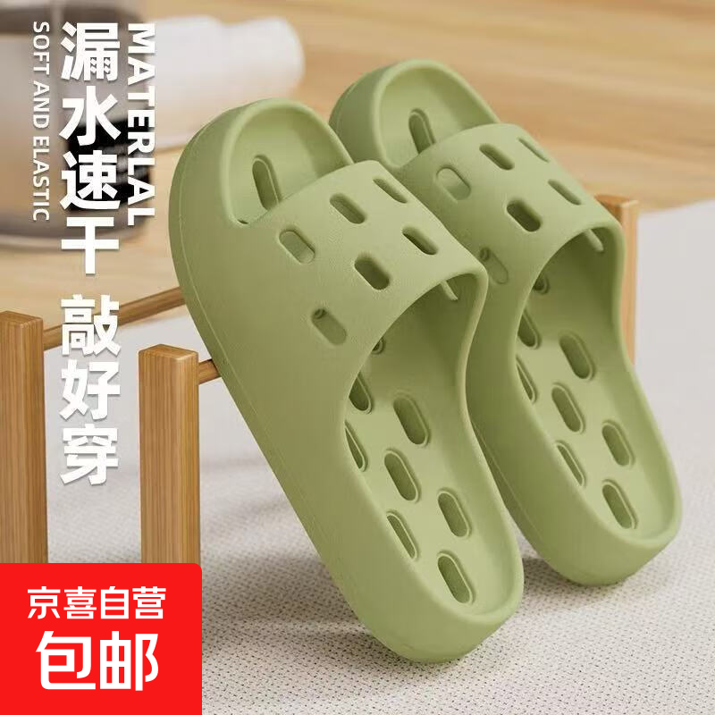 漏水防滑拖鞋2026新款浴室洗澡家居室内漏水速干凉拖防臭运动拖鞋 绿色 偏小一码 40-41
