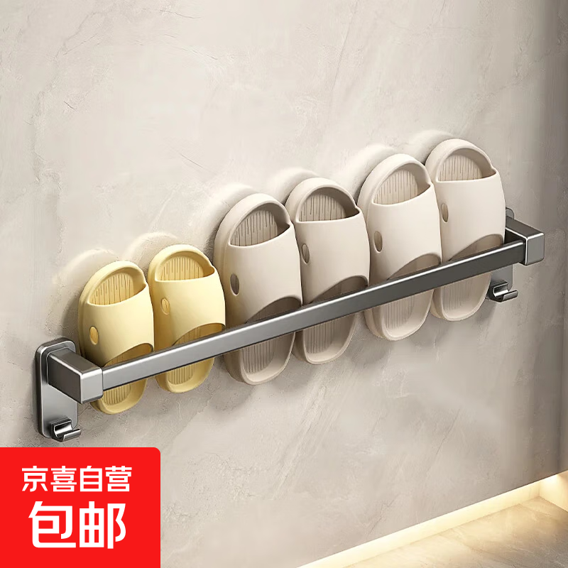 浴室拖鞋架免打孔壁挂卫生间置物架厕所门后鞋子挂架收纳神 【60cm】枪灰单杆拖鞋架