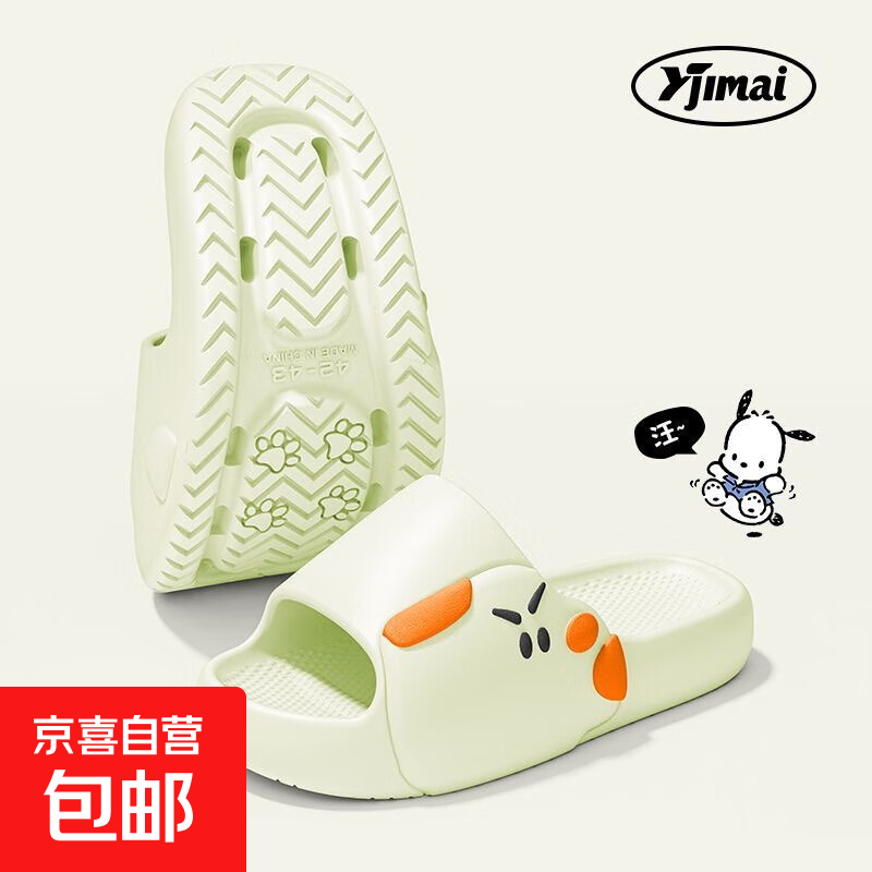 夏日物鸣新款拖鞋外穿夏季卡通家居居家防滑情侣可爱厚底一字拖鞋 绿色 40-41
