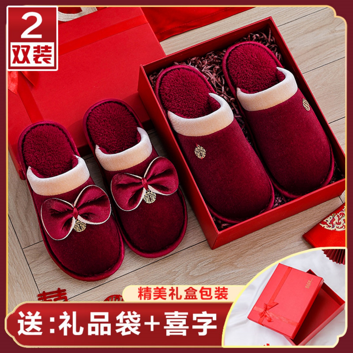 冬季结婚拖鞋一对红色喜庆高级2025新款新婚情侣新郎新娘居家婚鞋