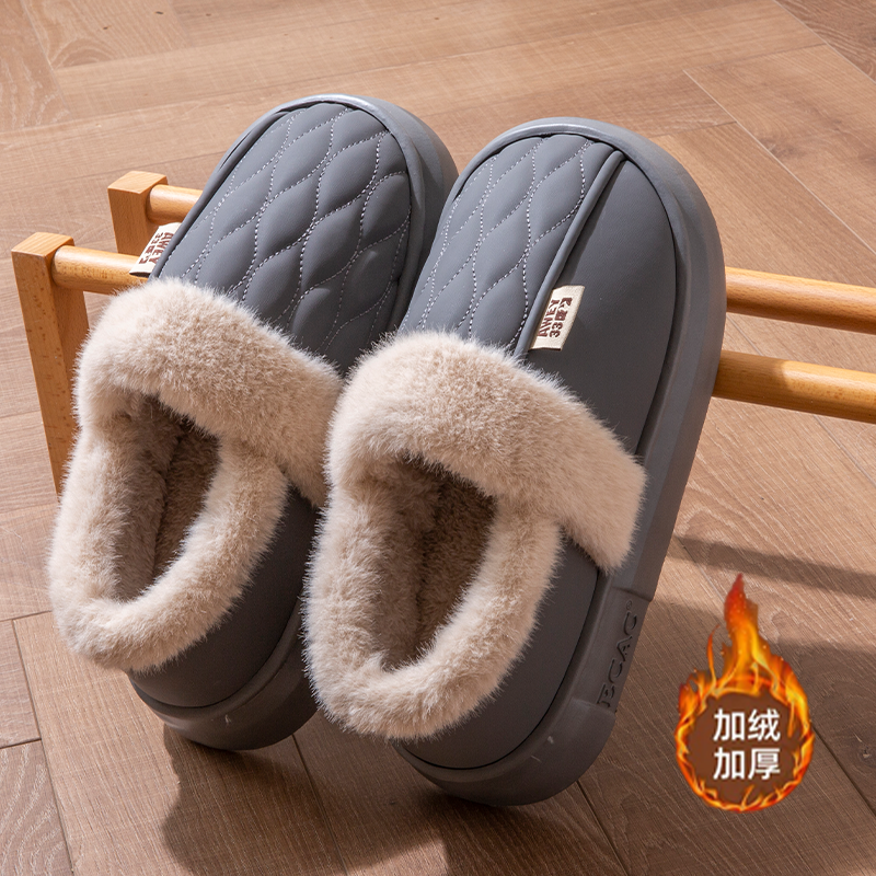 防水棉拖鞋男款冬季包跟2024新款室内家居保暖加绒防滑厚底棉鞋男