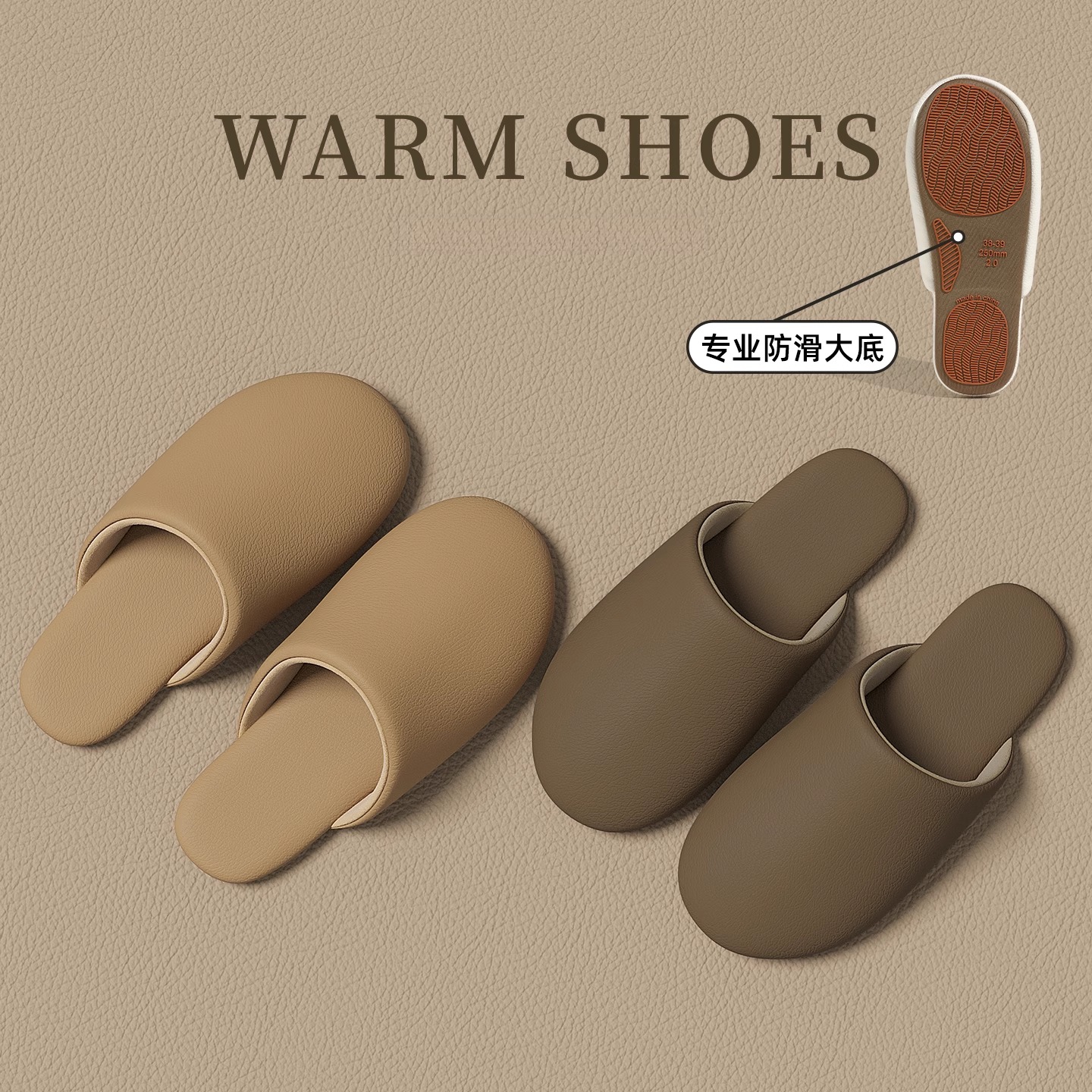 日式静音拖鞋女秋冬室内家居2025新款防滑软底pu家用待客棉拖女士
