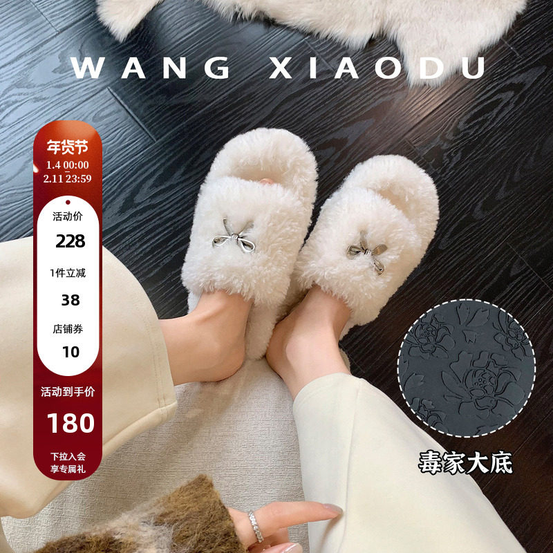 原创【王小毒】暖冬花蝶●5cm增高~保暖羊羔绒毛毛拖鞋女外穿慵懒