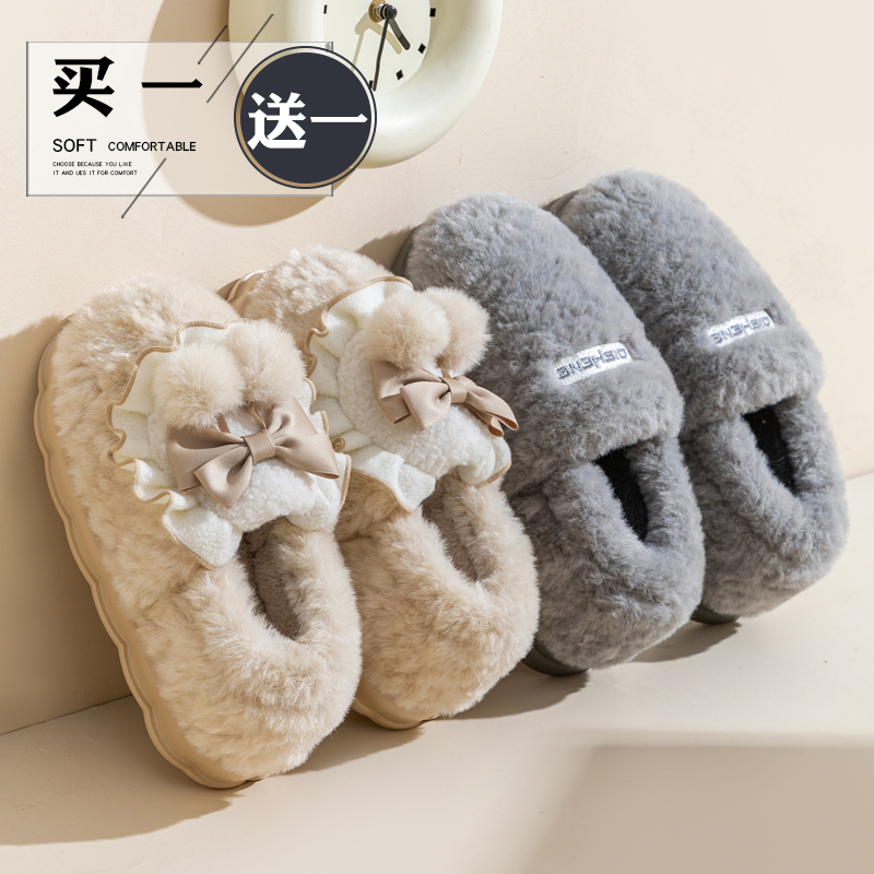 买一送一棉拖鞋女冬季包跟2025新款室内家居一对情侣保暖棉鞋男士