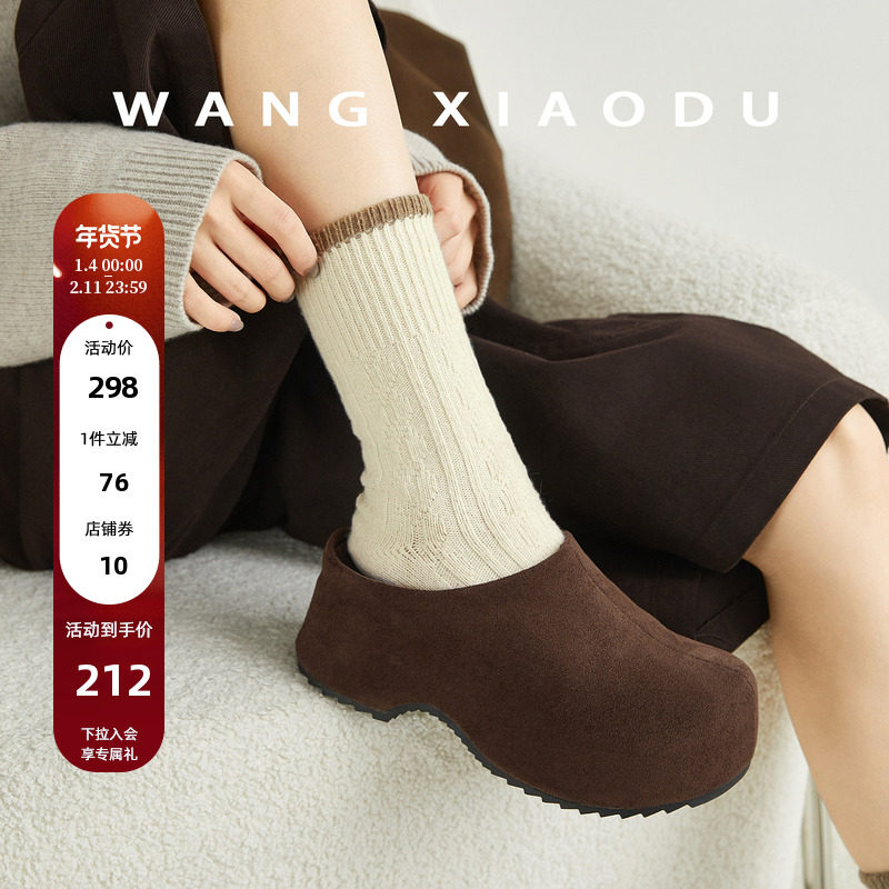 【王小毒】焦糖岛屿○6.5cm内增高包头拖女绒面复古厚底勃肯拖鞋