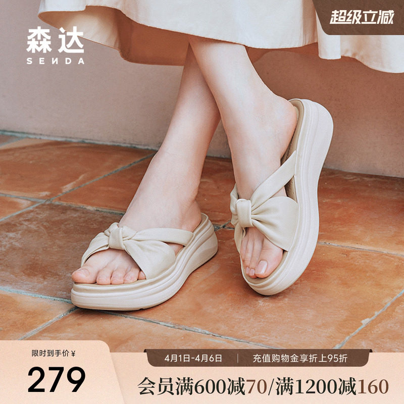 森达凉拖鞋女夏款商场同款简约休闲鞋子外穿厚底休闲拖鞋4RO39BT4