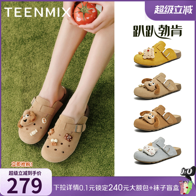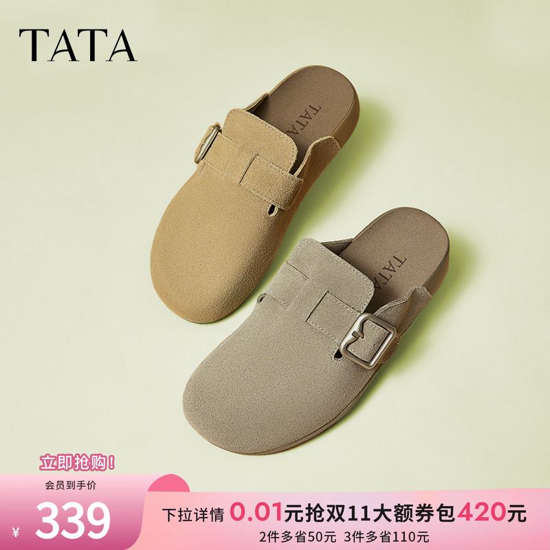 TATA他她复古勃肯鞋女春季新款休闲包头拖鞋女鞋穆勒单鞋CGW03AH5
