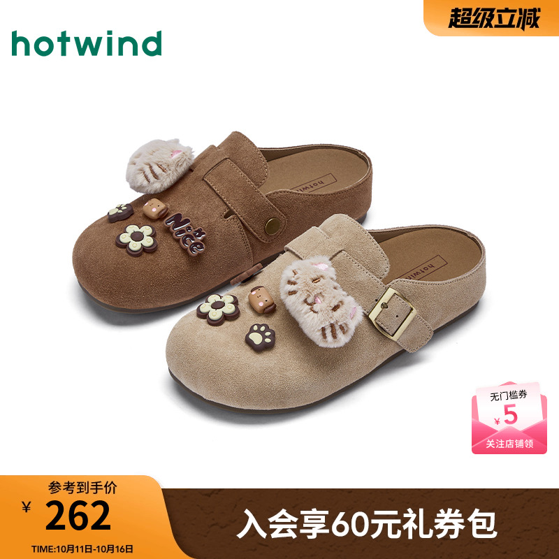 热风复古勃肯鞋女鞋2025年秋季新款休闲半拖鞋百搭通勤棕色包头拖