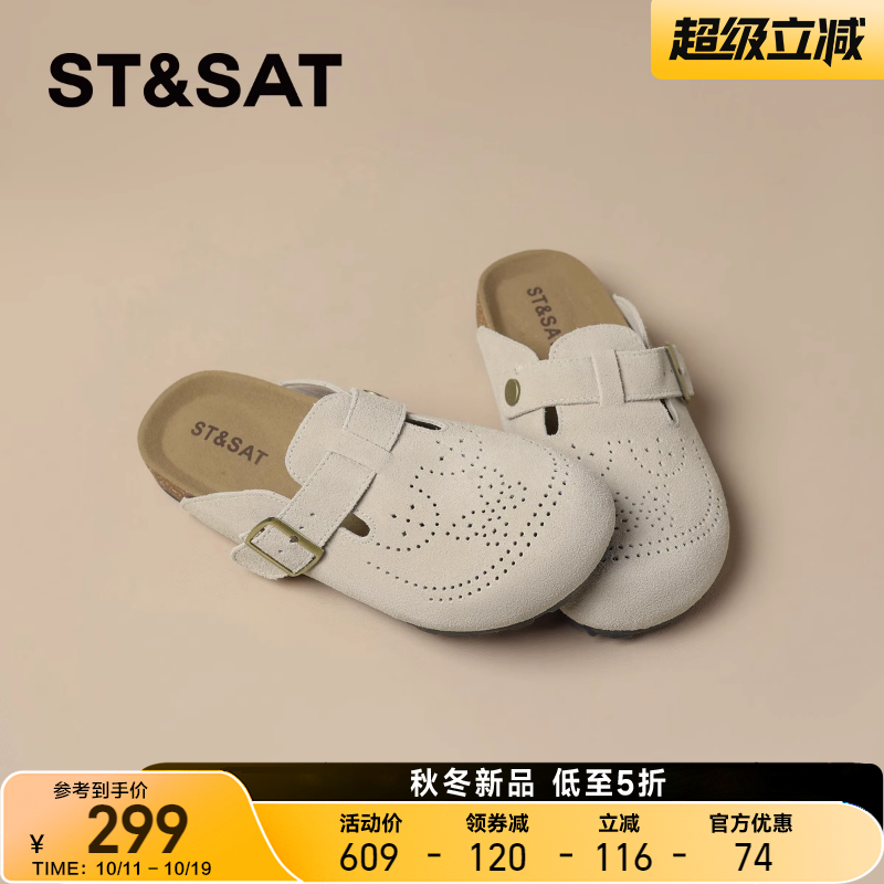 星期六镂空厚底勃肯鞋半拖鞋女2025夏季新款复古一脚蹬包头软木鞋