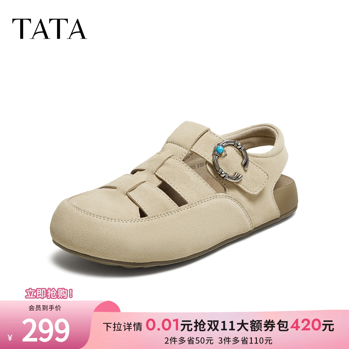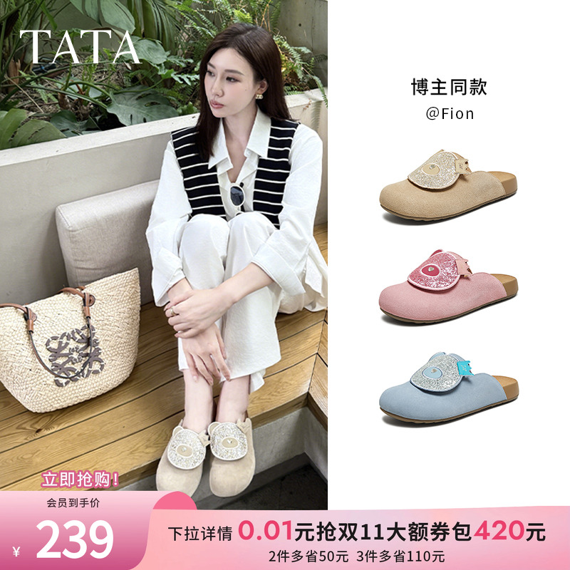 TATA他她厚底休闲勃肯鞋女外穿拖鞋厚底穆勒鞋2025夏新款YSP01BH5