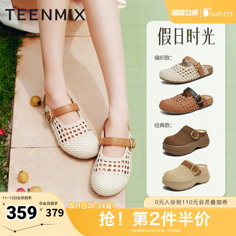 天美意2025新款商场同款包头拖鞋镂空复古女勃肯鞋CHS39BH5