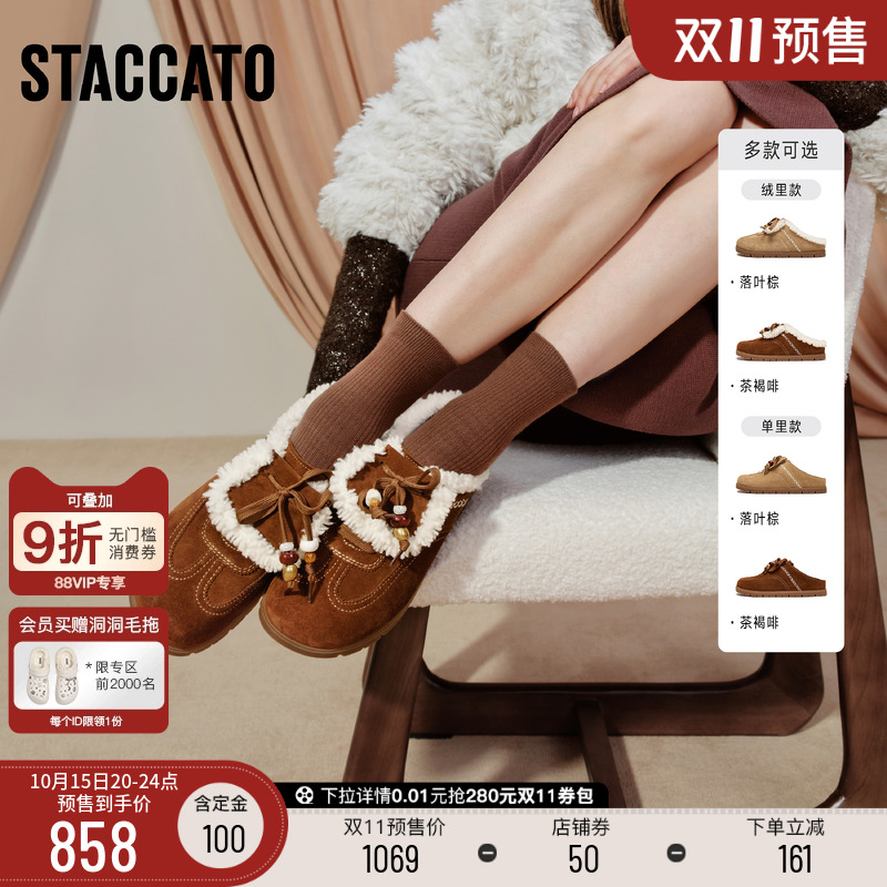 思加图2025新款雪绒绒复古勃肯鞋大头鞋厚底加绒半拖鞋女EIM02DH5