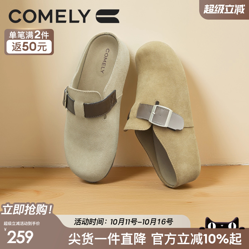 大东勃肯鞋女鞋2025秋季新款时尚平底包头女拖鞋套脚半拖鞋女单鞋