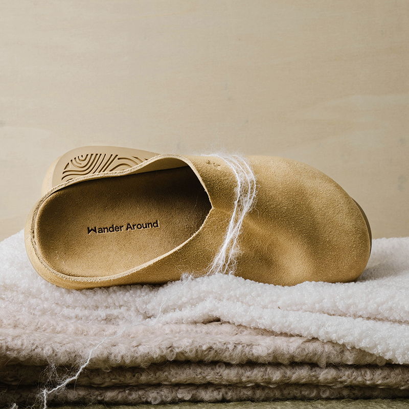Wander around厚底增高牛皮绒面革软底勃肯鞋复古休闲懒人拖鞋女