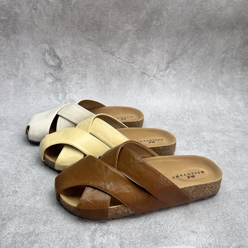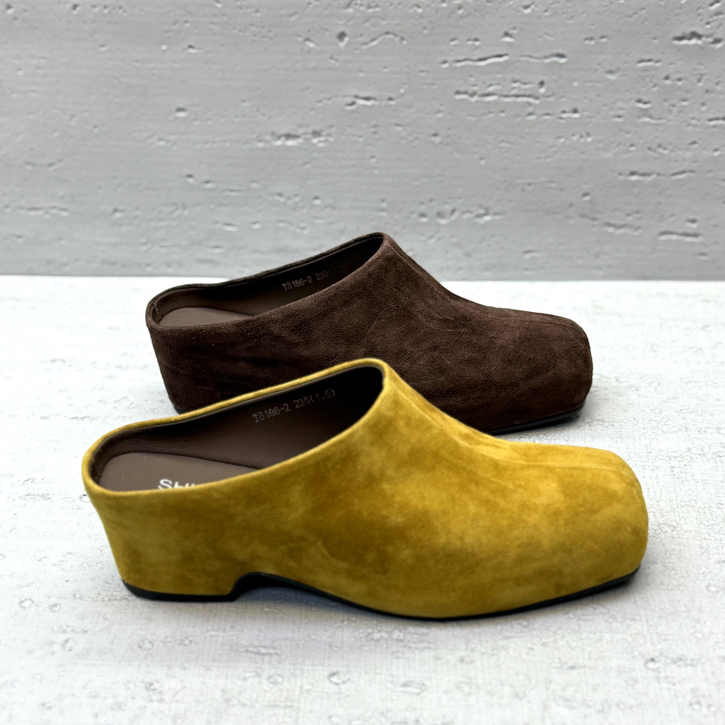 欧洲站欧货女鞋2026春夏新真皮磨砂方头低跟包头拖鞋外穿懒人凉拖