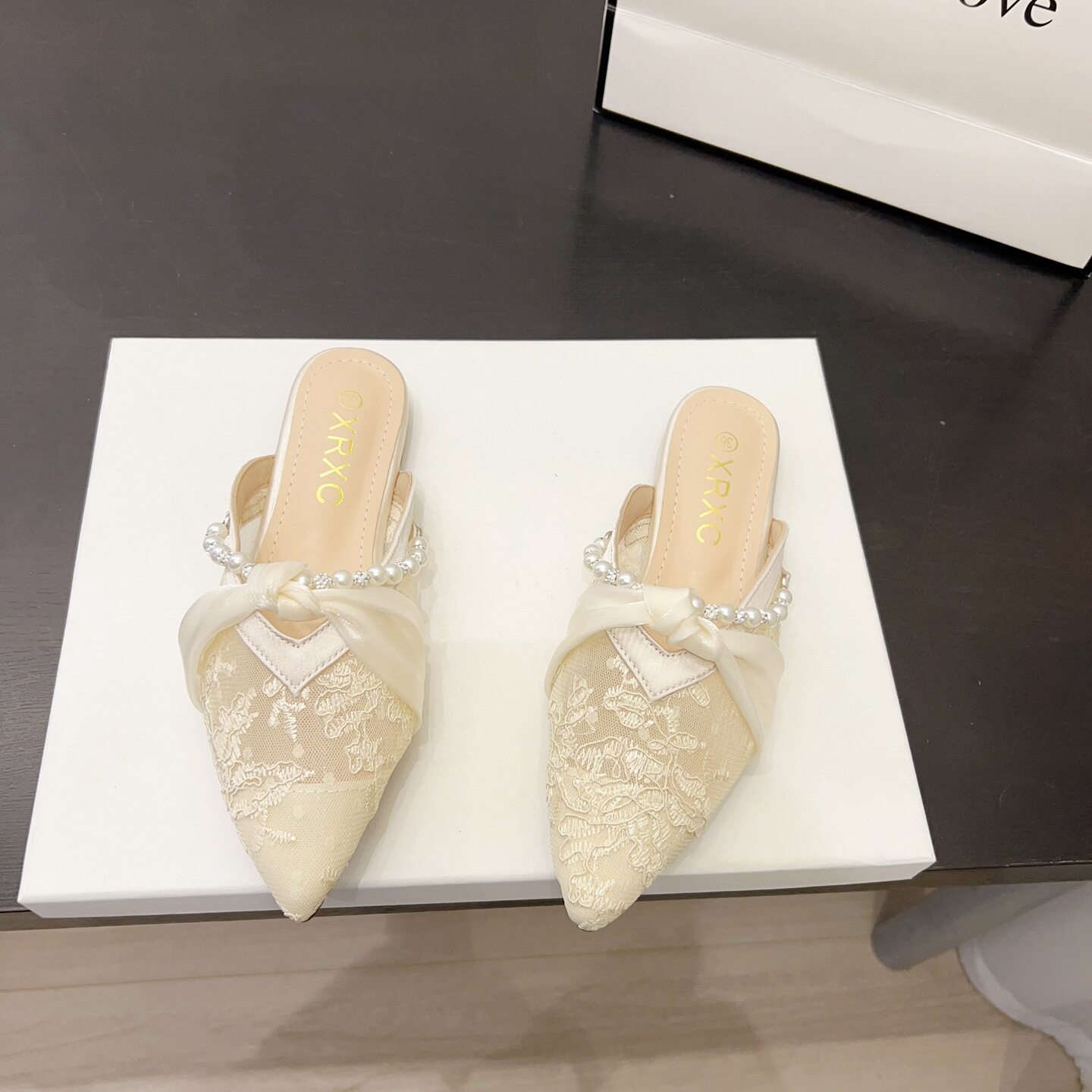 新中式包头半拖鞋女2026春夏季新款穆勒鞋网纱透气平底尖头凉拖鞋