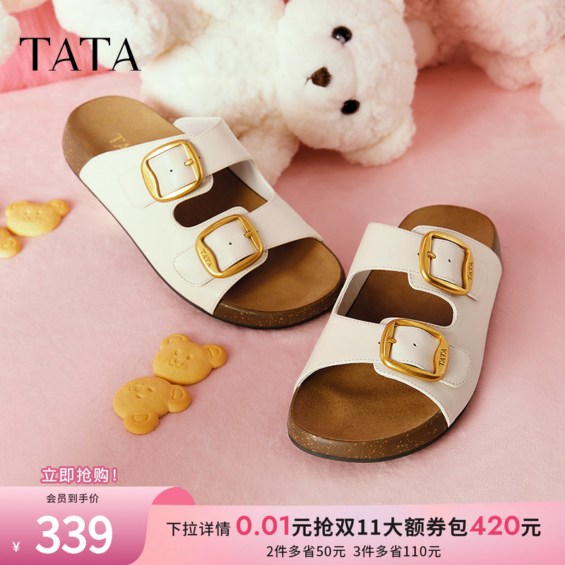 TATA他她黄油小熊联名勃肯鞋凉拖鞋女2025夏季休闲鞋外穿4TF01BT5