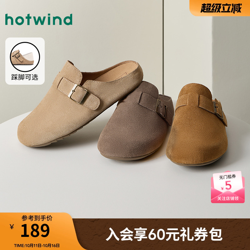 热风男鞋2025年春季新款复古勃肯鞋百搭平底包头拖鞋一脚蹬鞋子男