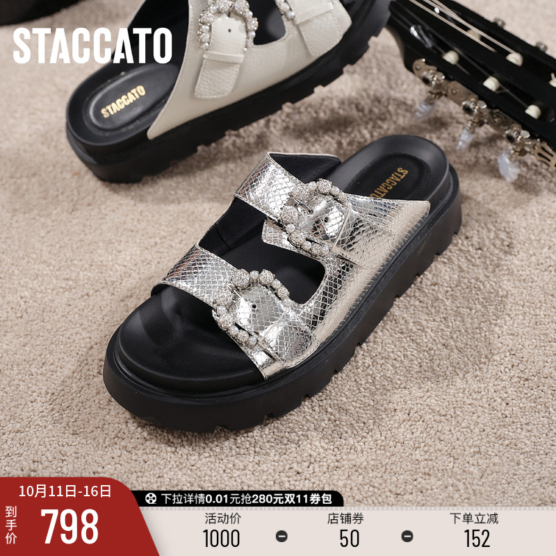 百丽女鞋子厚底洞洞鞋女新款可外穿增高包头外穿半拖鞋B1897BH4