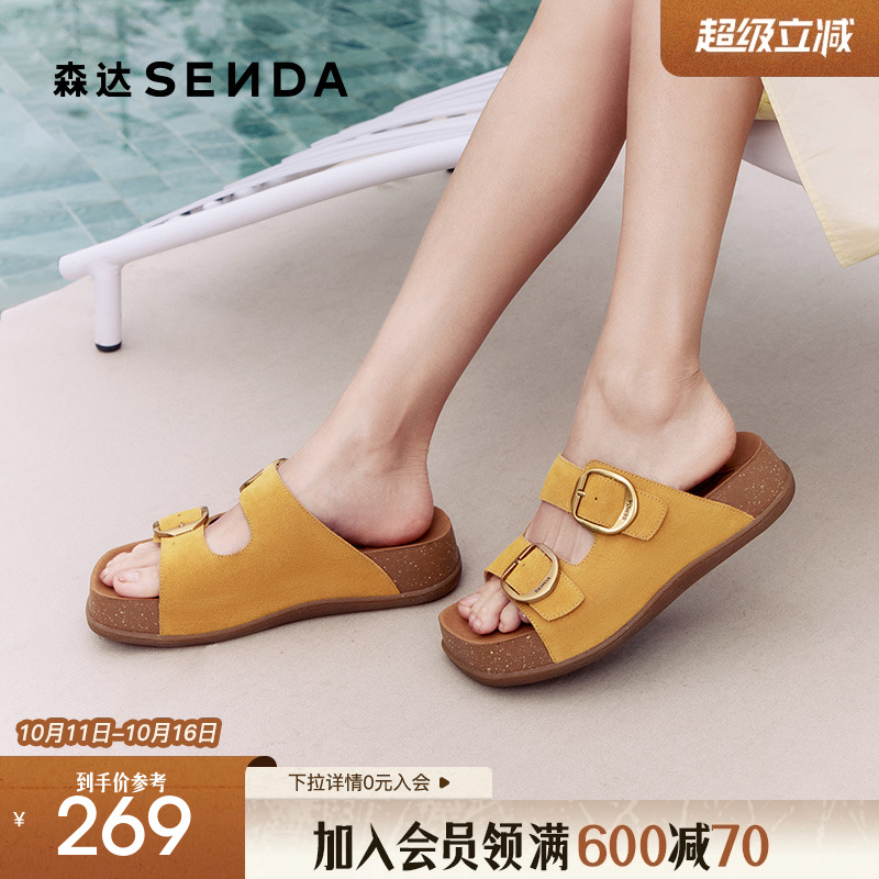 黄圣依明星同款森达流金麻薯勃肯鞋女2025夏商场新款凉拖鞋4IS30