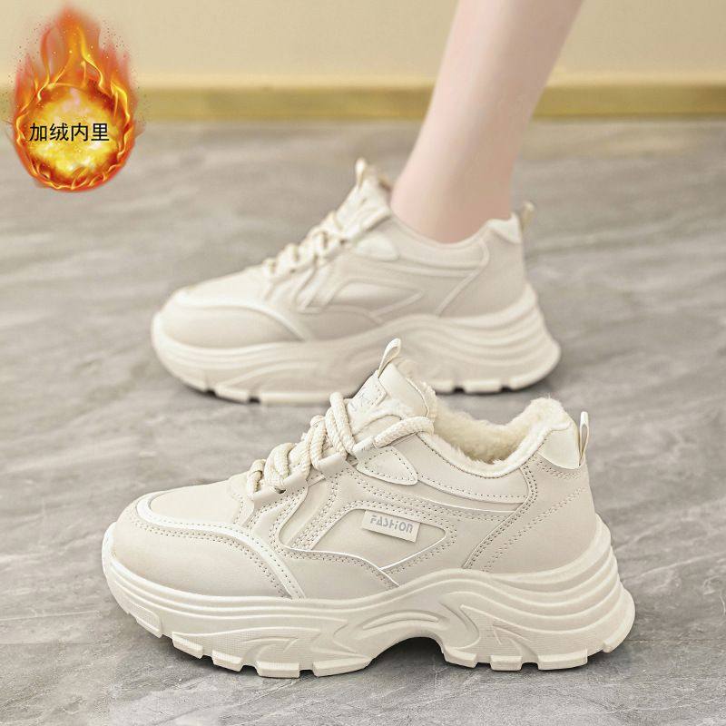 外穿加绒老爹鞋女2025新款冬季百搭厚底低帮棉鞋百搭休闲运动鞋软