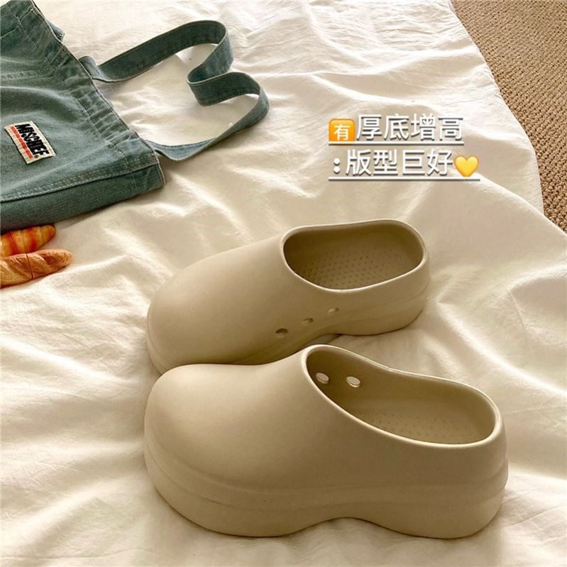 自留厨师鞋~!版型巨好厚底增高透气包头凉拖鞋女夏季外穿洞洞鞋