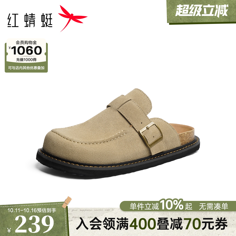 红蜻蜓勃肯鞋2025秋冬新款男鞋厚底居家休闲半拖鞋懒人外穿包头拖