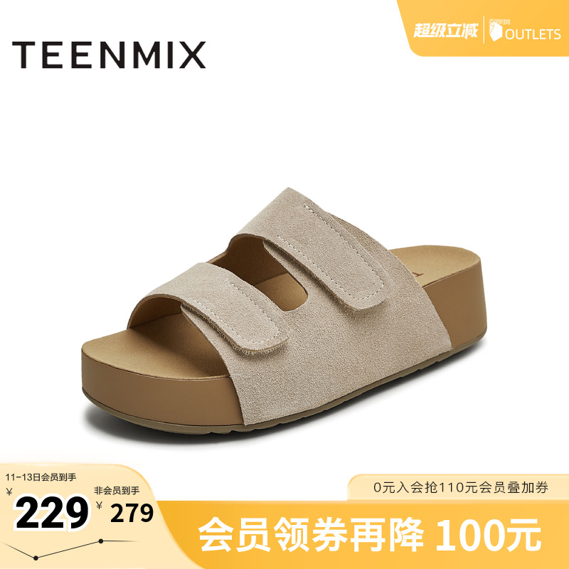 天美意2025秋新款魔术贴厚底拖鞋外穿沙滩鞋女勃肯拖鞋KK064CT5
