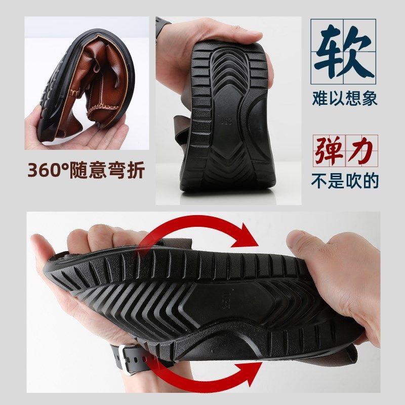 2024夏季新款皮面露趾开车两穿男凉鞋套脚平底沙滩休闲度假拖鞋