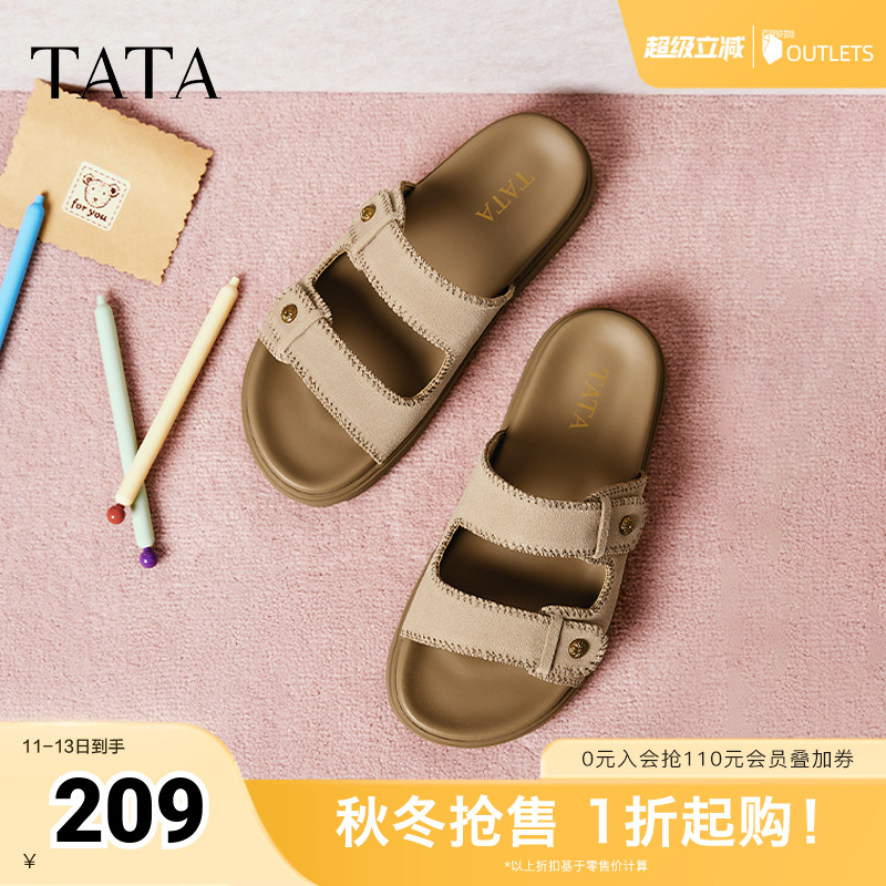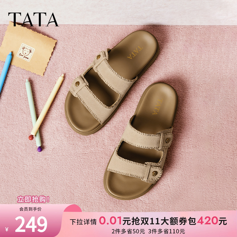 TATA他她复古勃肯拖鞋女鞋外穿厚底休闲凉鞋2025秋季新款CU801BT5