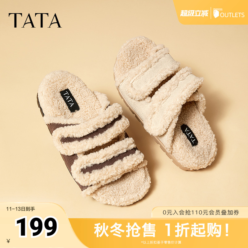 TATA他她复古加绒勃肯鞋女鞋休闲毛毛鞋保暖拖鞋秋季新款CY401AT5