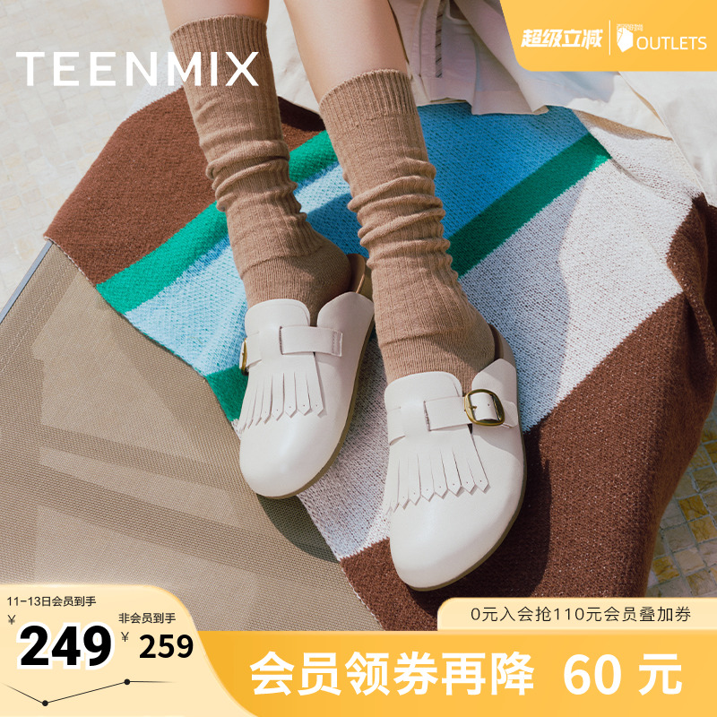 天美意复古厚底勃肯鞋包头半拖鞋女休闲单鞋2025秋季新款CHS33AH5