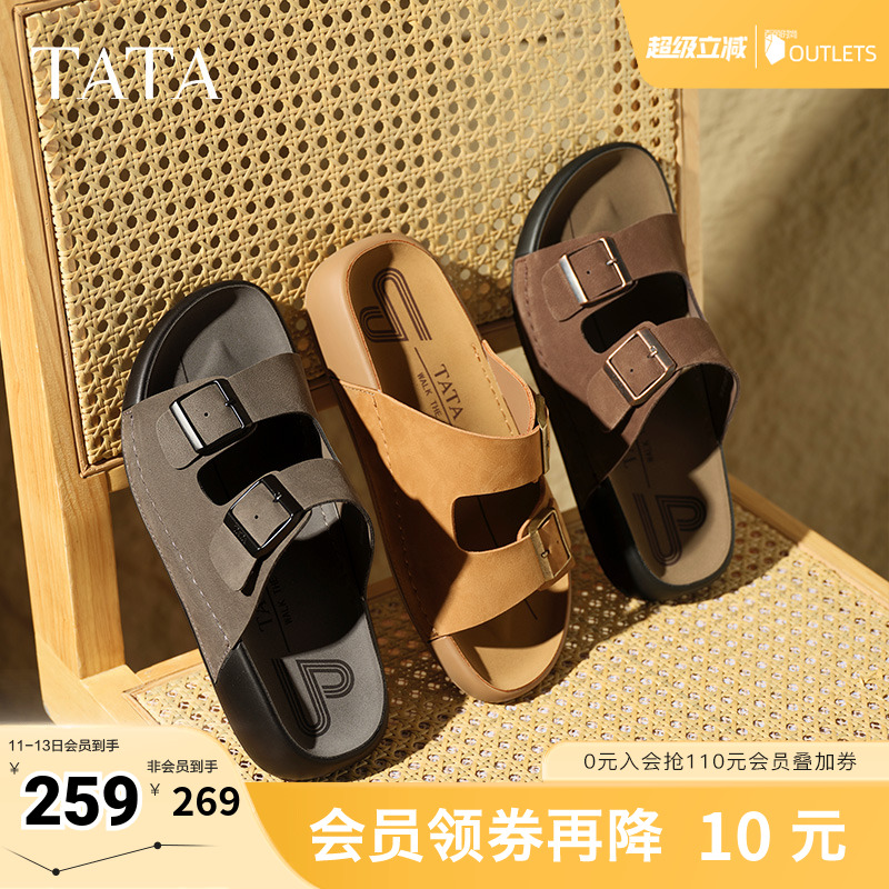 TATA他她复古休闲勃肯拖鞋男鞋厚底外穿凉鞋2025秋季新款AAD02BT5