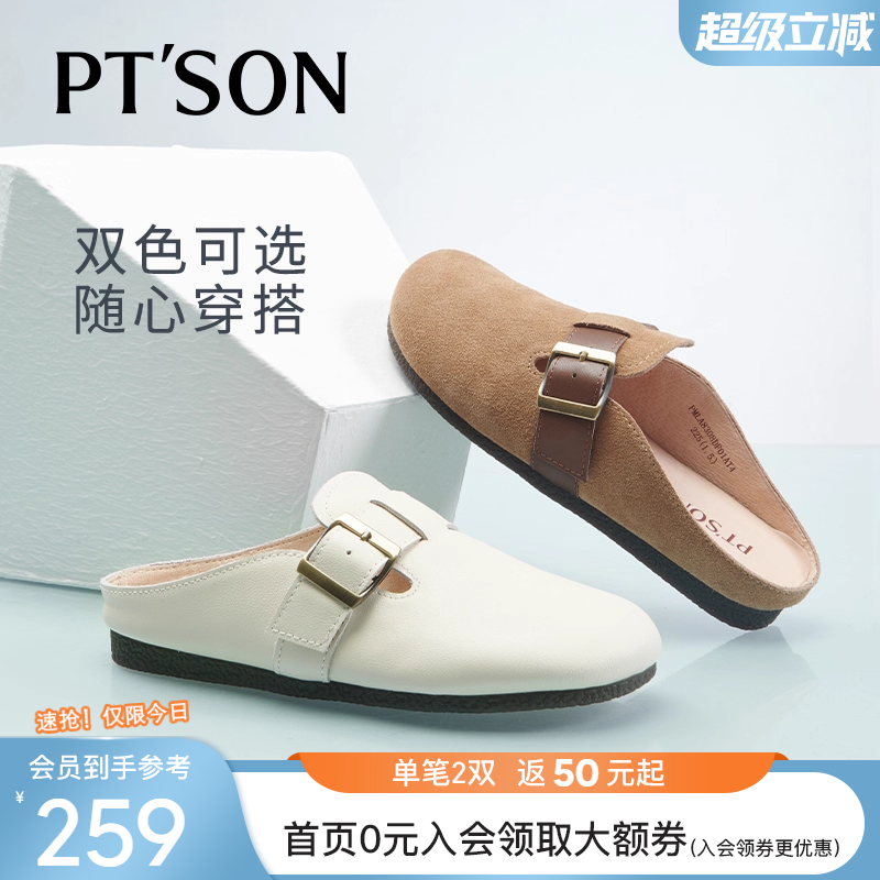 商场同款百田森牛皮勃肯拖鞋女夏季新款平底皮带扣包头半拖鞋