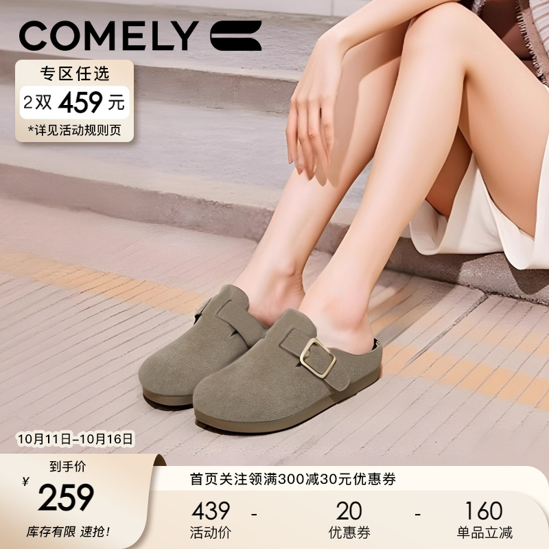 康莉穆勒鞋勃肯鞋女2025年春季新款牛皮绒面革外穿一脚蹬包头拖鞋