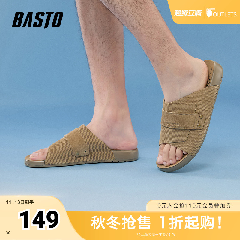 百思图2025夏季新款时尚户外休闲勃肯鞋平跟男拖鞋FBK09BT5