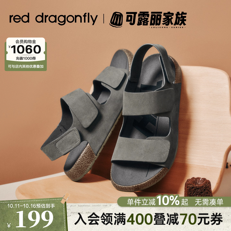 红蜻蜓可露丽勃肯鞋夏季新款男鞋休闲凉鞋魔术贴开车外穿沙滩拖鞋