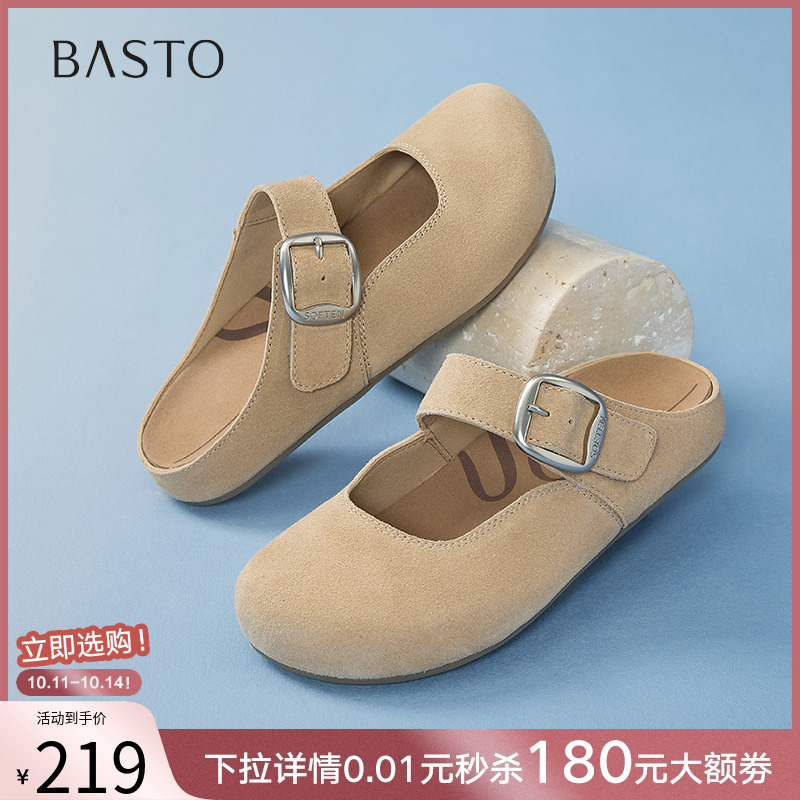 百思图2025夏季新款一脚蹬勃肯鞋半拖懒人鞋外穿女拖鞋B9322BH5