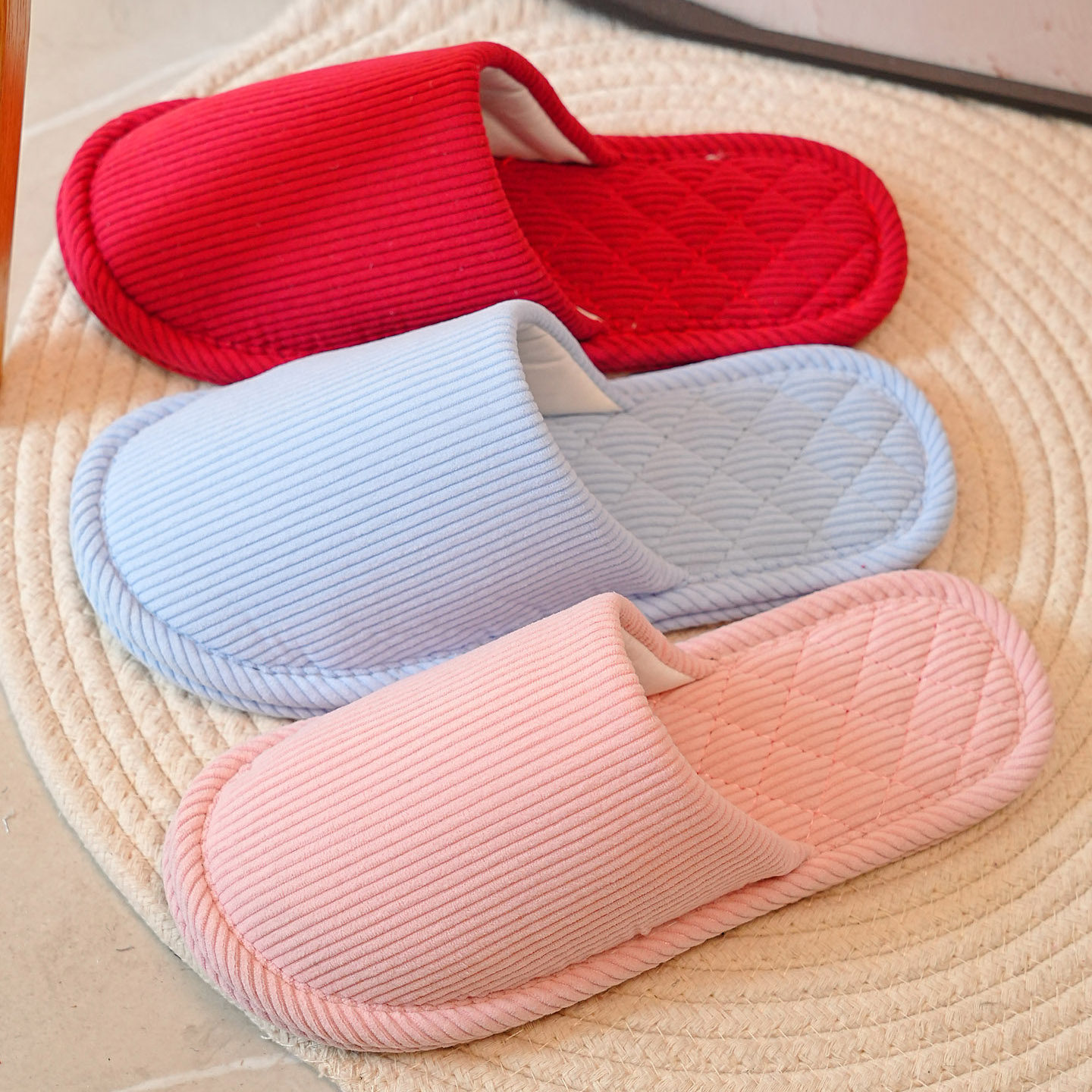 家居室内红色本命年拖鞋结婚喜庆条绒静音无声布艺布底棉拖鞋秋冬