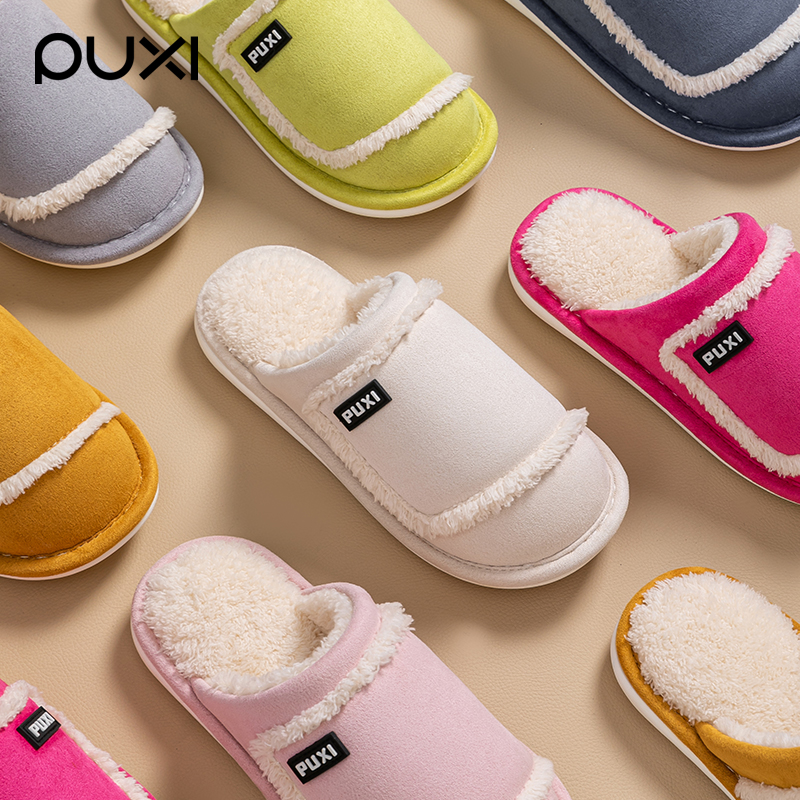 朴西秋冬季新款软底棉拖鞋女居家静音加绒保暖防滑简约情侣棉拖男