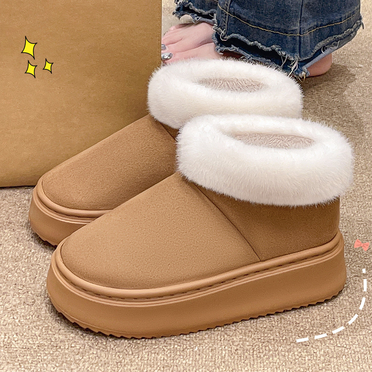 星之月厚底外穿棉鞋男士高帮全包跟毛绒拖鞋居家毛毛鞋加厚保暖鞋
