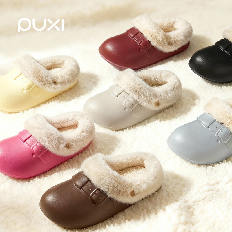 朴西月隐加绒棉拖鞋女2025秋冬居家室内加厚保暖毛绒抗菌拖鞋家用