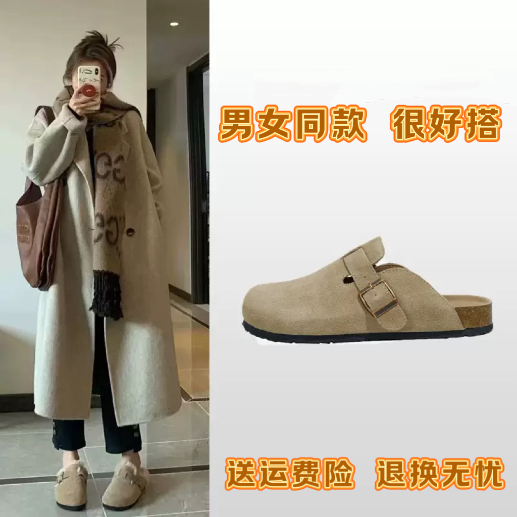 勃肯鞋包头半拖鞋男女2025秋冬季潮防滑一脚蹬增高情侣款勃肯鞋女