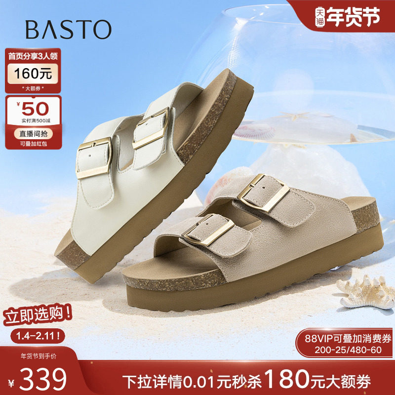 百思图2025夏季新款勃肯拖鞋懒人一脚蹬休闲厚底女凉拖鞋D3237BT5