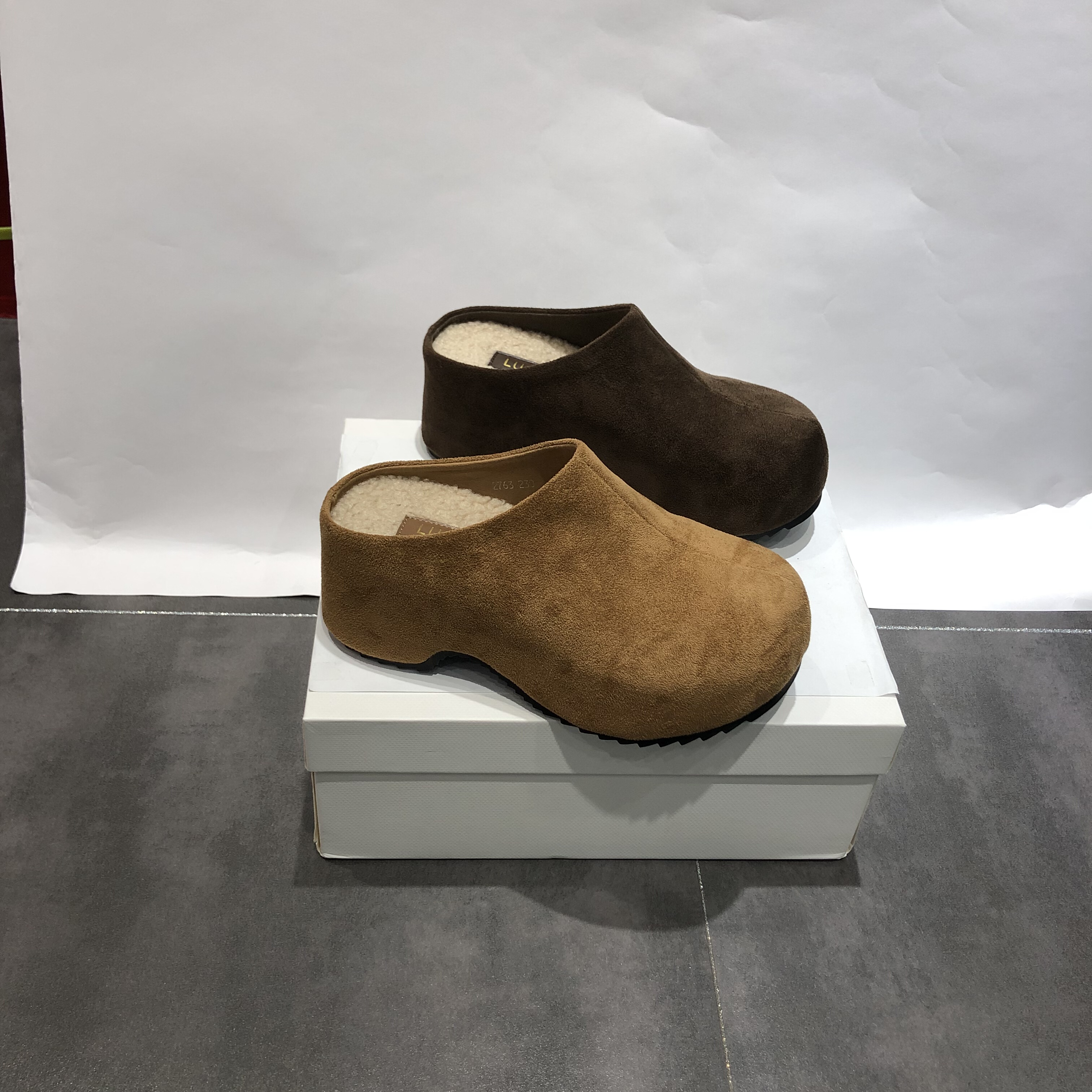星期六复古真皮加绒勃肯鞋半拖鞋女2025秋冬新款厚底保暖一脚蹬