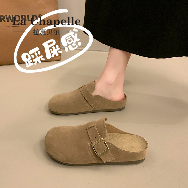 拉夏贝尔复古刺绣勃肯鞋包头半拖鞋女外穿2025年秋季新款厚底博肯