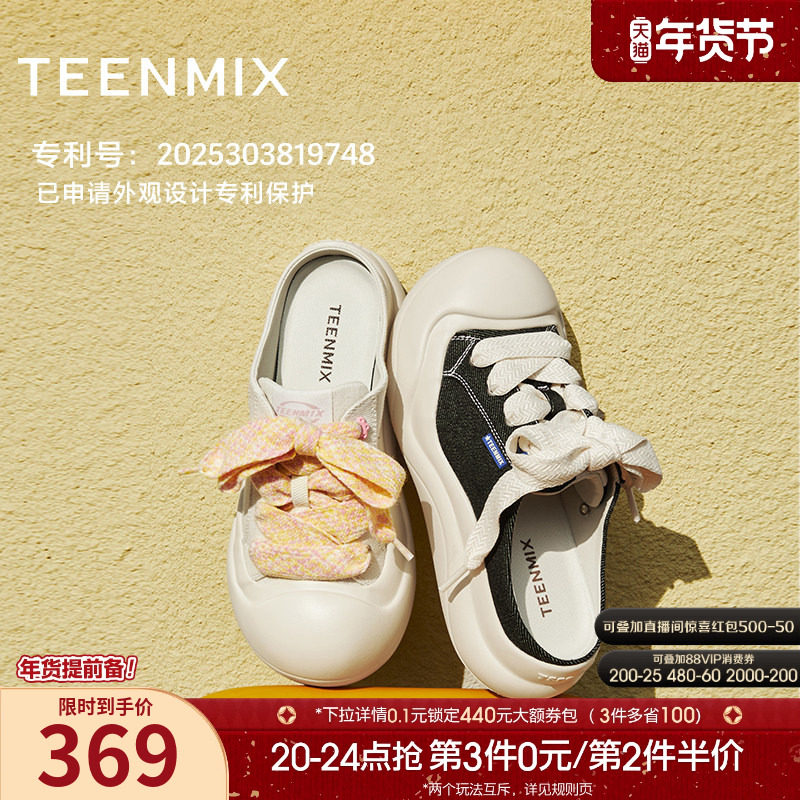 天美意趴趴团子厚底小白鞋包头半拖鞋女凉拖大头鞋板鞋夏季新款