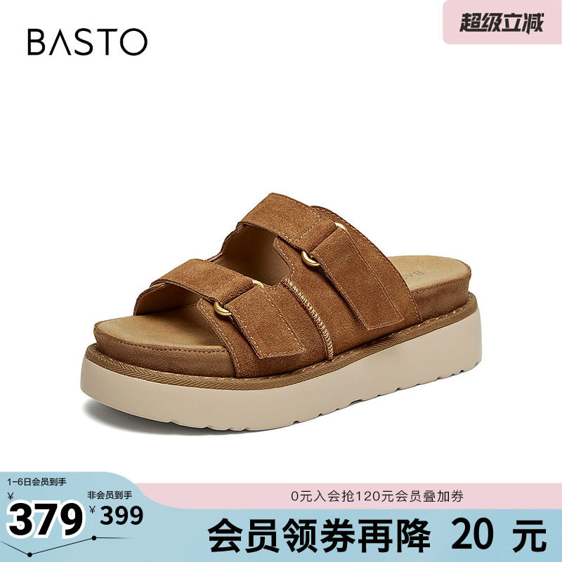 百思图2026夏季新款商场同款时尚复古休闲女拖鞋ZHT89BT6