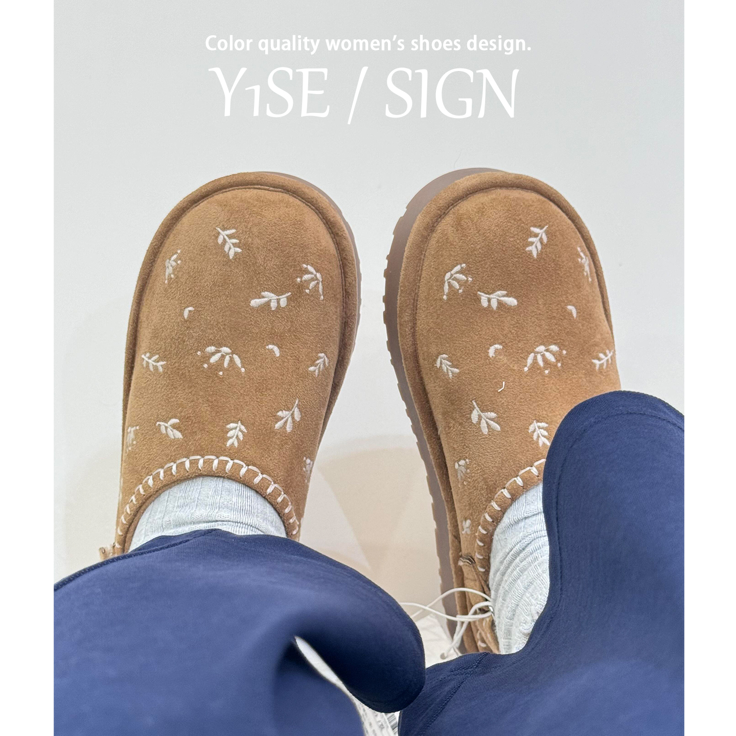 日系小众刺绣厚底加绒包头拖鞋女外穿2025秋冬新款棕色毛毛勃肯鞋